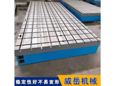 T型槽铸铁平台的T型槽主要用于固定工件或设备。T型槽的形状为T字形,沿平台工作面纵向或横向分布,槽内可放置T型螺栓,螺栓头部卡在T型槽的底部,螺杆伸出槽外,通过螺母将工件或设备紧固在平台上。这种固定方式能确保工件在加工、检验或装配过程中不会移动,保证操作的稳定性和精度。T型槽的尺寸和间距根据平台规格而定,可根据需要选择合适的T型螺栓配合使用。带有T型槽的平台在机械加工、装配等场景中应用广泛,能提高工件的装夹效率,简化固定工序,是平台实现多功能用途的重要结构设计。