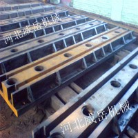 T型槽铸铁地轨根据设备的固定点来设计、拼接成铸梁平台,主要用于大型设备的装配、试验、铸铁和检验。 T型槽铸铁地轨的材质:度铸铁HT200-300,工作面硬度为HB170-240,经过两次人工处理(人工退火600度-700度和自然时效2-3年)使该产品的精度稳定,耐磨性能好。