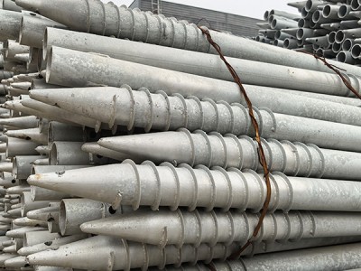 虽安装便捷,绞龙地桩仍需注意施工细节:安装前需勘察土壤密度、含水率等参数,据此选择适当的叶片规格和机械功率,避免因参数不匹配导致桩体无法深入或承载力不足;安装时需控制桩体垂直度,偏差应不超过1°,防止因倾斜影响受力;在坚硬岩层或碎石多的区域,需提前清理表层障碍物,避免损坏叶片或桩身。
