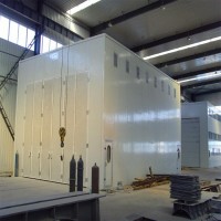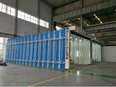 ◦ 侧面下冲式喷漆房:空气从喷漆房的天棚进入,然后由侧面墙根排出。这种气流走向能使喷漆过程中的空气环境得到较好的控制,喷漆效果和工作环境都优于横流式,适用于有一定规模和品质要求的喷漆作业。
