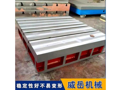 划线平台按照结构可以分为筋板式和箱体式,外观上大多是箱体式设计。工作面有长方形、正方形或圆形,采用刮研工艺,可以在工作面上加工出V形、T形、U形槽、燕尾槽、圆孔、长孔等多种形状。划线平板不仅可以用作机械零件平面度、平行度、直线度等形位公差的测量基准,还适用于工件、设备检测、划线、装配、焊接、组装、铆焊的平面基准量具。